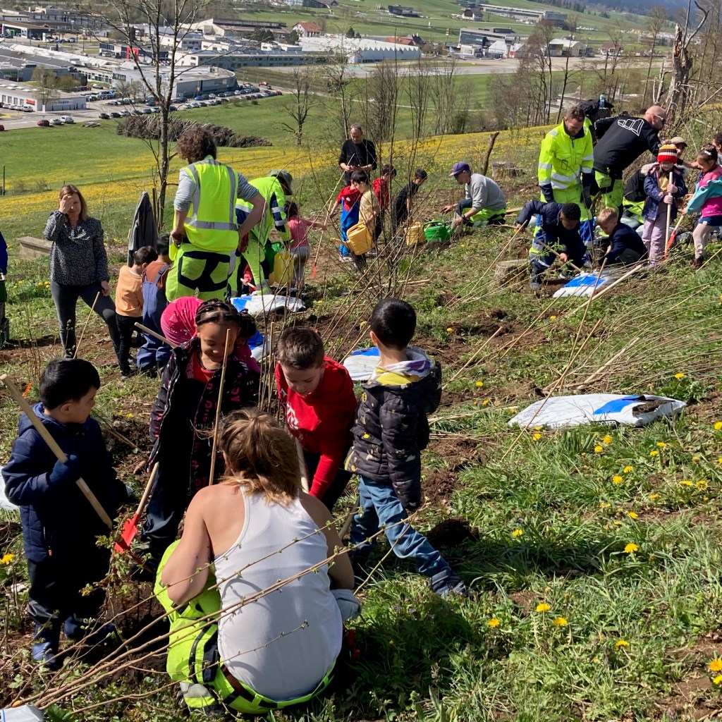 Le second projet a financé une grande partie des nouvelles rangées d’arbres, haies et bordures végétales autour du collège des Endroits, plantés fin avril 2024, avec la participation de deux classes du collège.