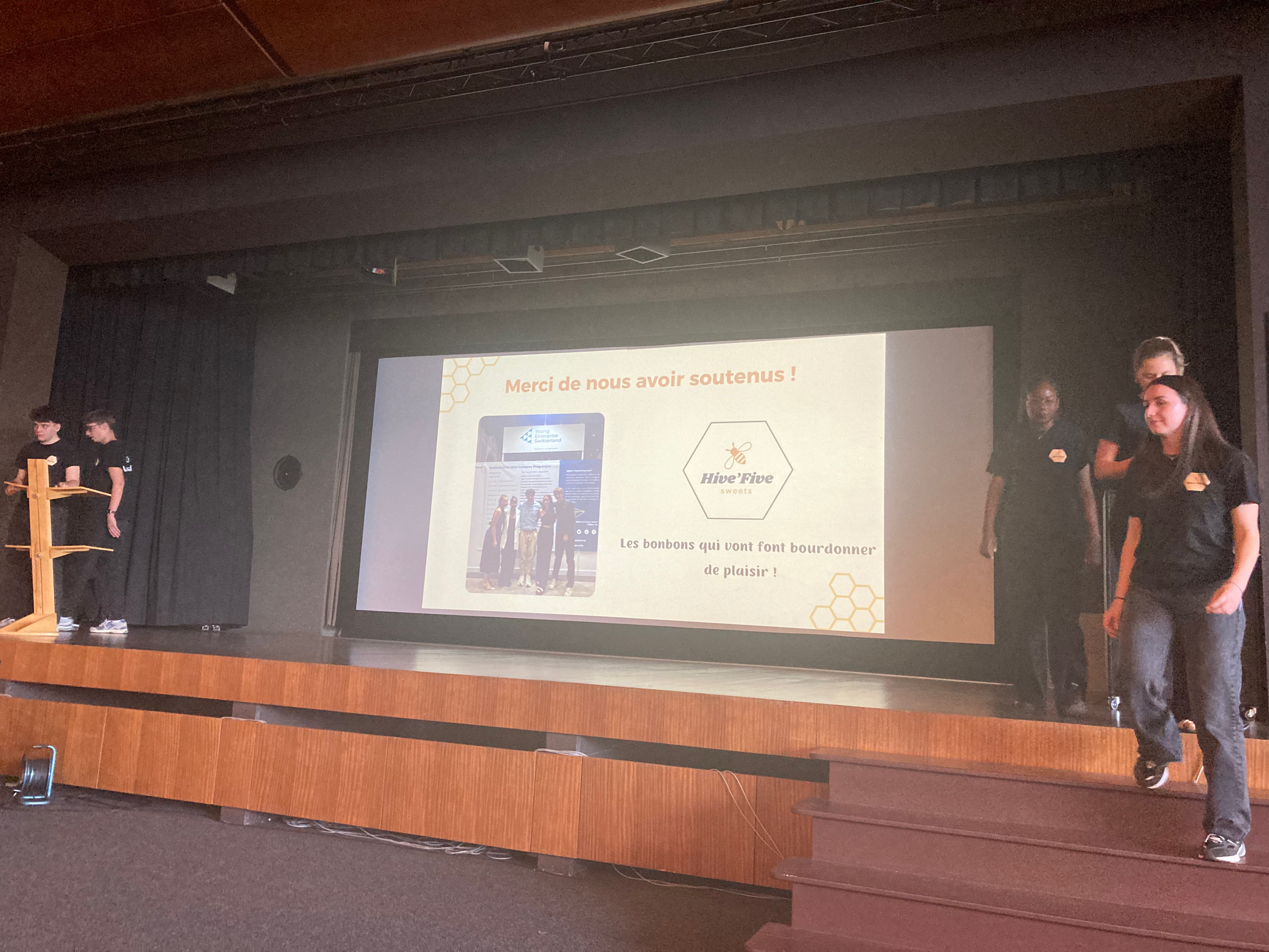 Lundi 1er juillet 2024 à 17 h 30, la petite entreprise lycéenne de cinq lycéen·ne·s, Hive Five, nous a remis une somme de 1500 francs lors d’une émouvante cérémonie au Lycée Blaise-Cendrars.