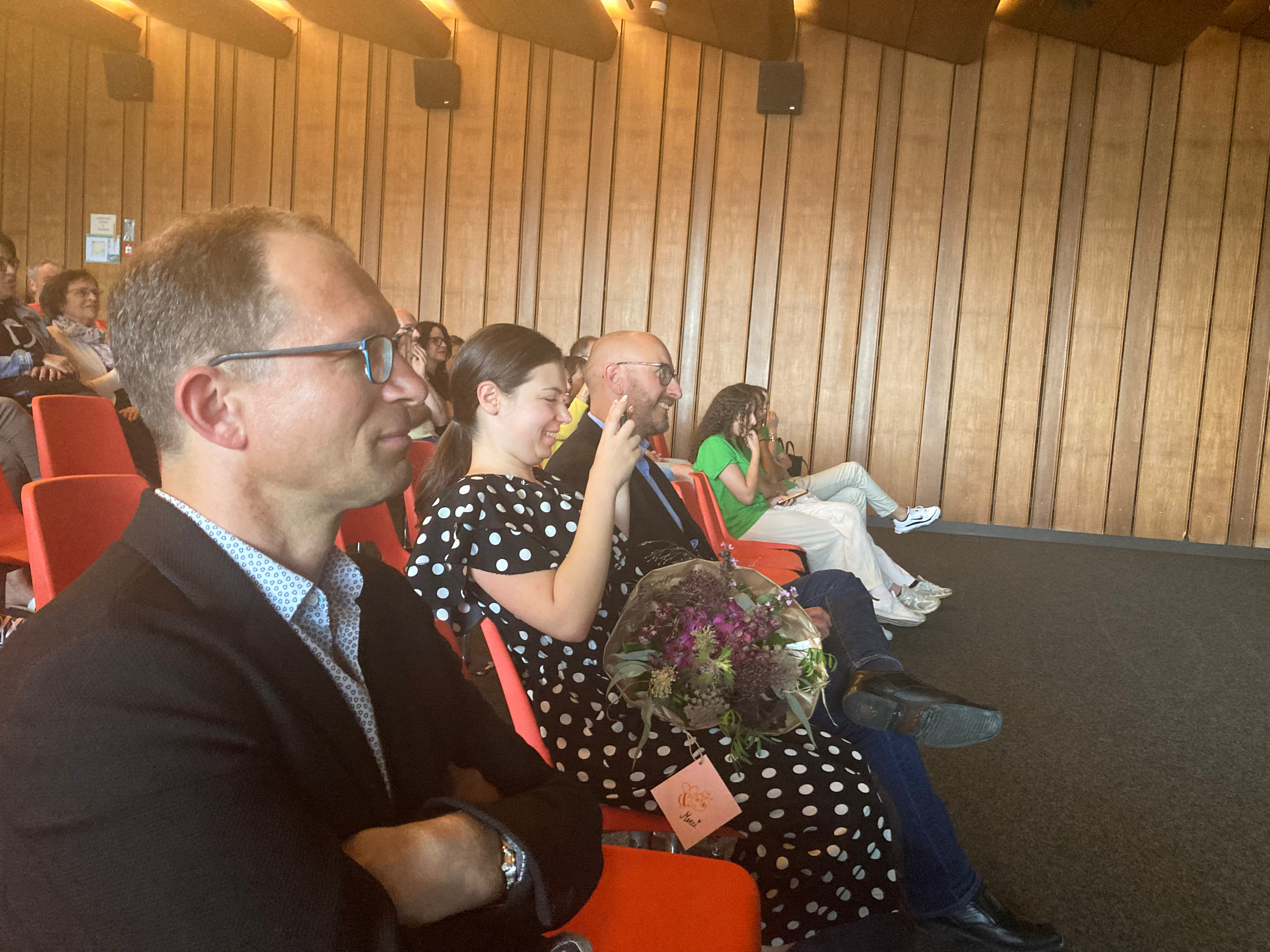 L’apiculteur Daniel Leuba et la professeure Aura-Marine Dawalibi furent remerciés par un cadeau.