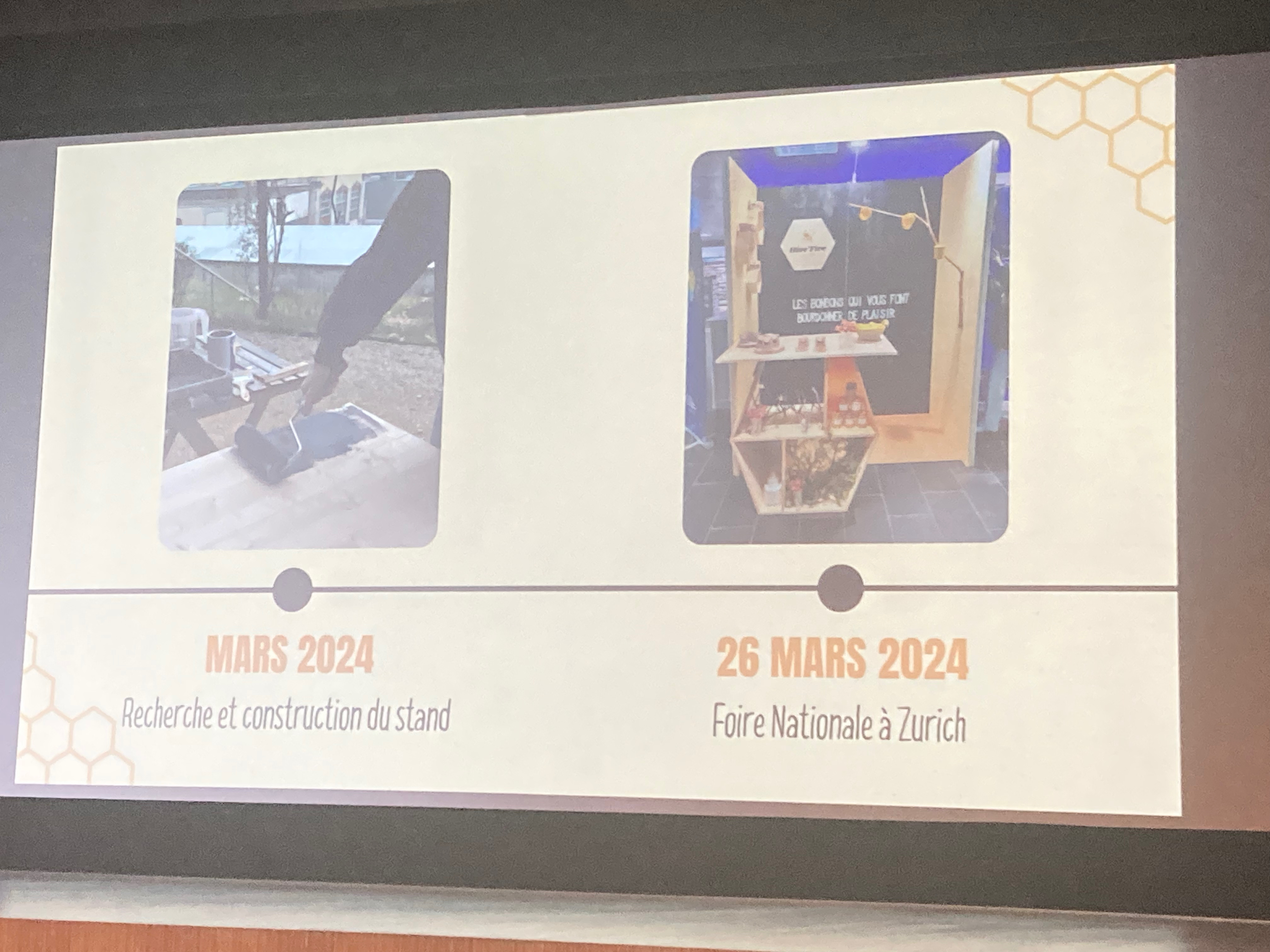 Par un diaporama, les cinq lycéenne·s ont ensuite détaillé la chronologie de leur aventure. Elle les a menés à être classés dans les huit premiers sur 250 lors de deux présentations dans le hall de la gare de Zurich.