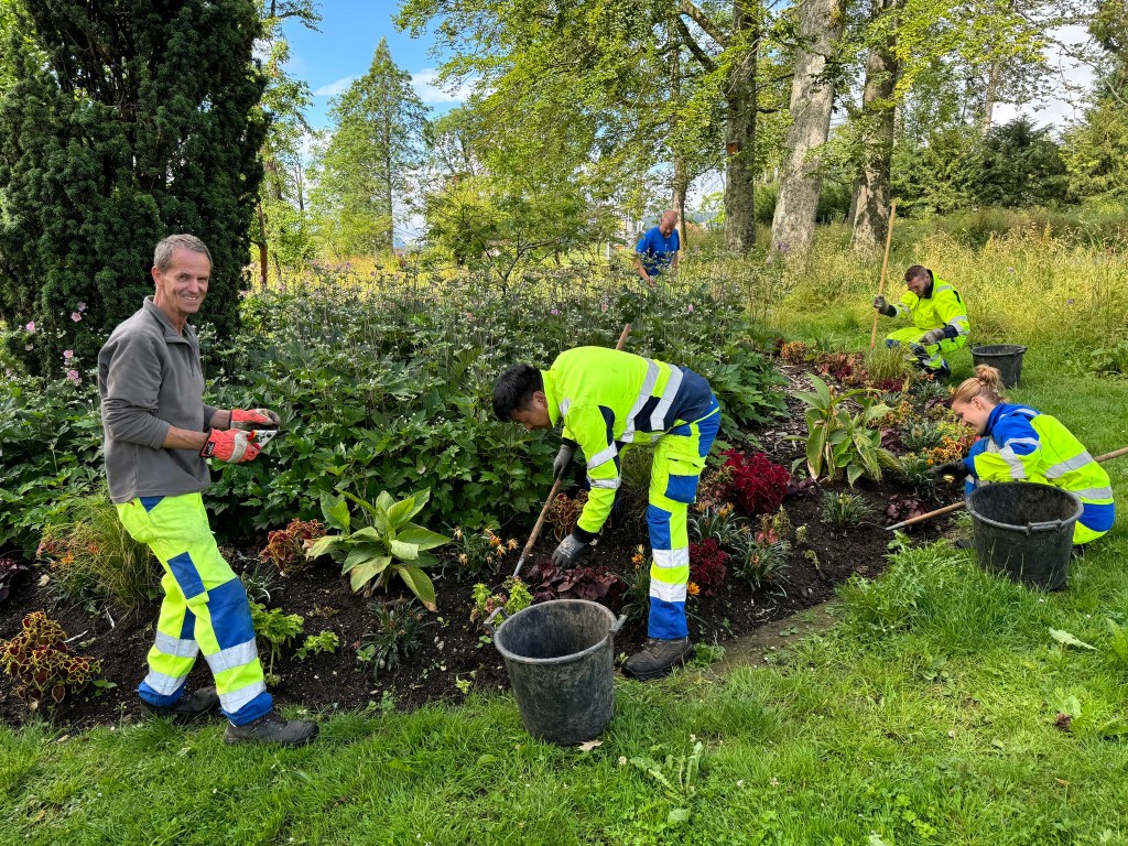 Au parc Gallet, ils sont là qui travaillent, nous bavardons, nous leur demandons si nous pouvons les prendre en photo. Bien sûr… l’un d’eux souhaite même le presque gros plan. Ils sont fiers de travailler pour nous. Nous bavardons avec la lycéenne qui œuvre avec eux. Nous parlons arbres puis fleurs, constatant que le temps les affecte aussi.